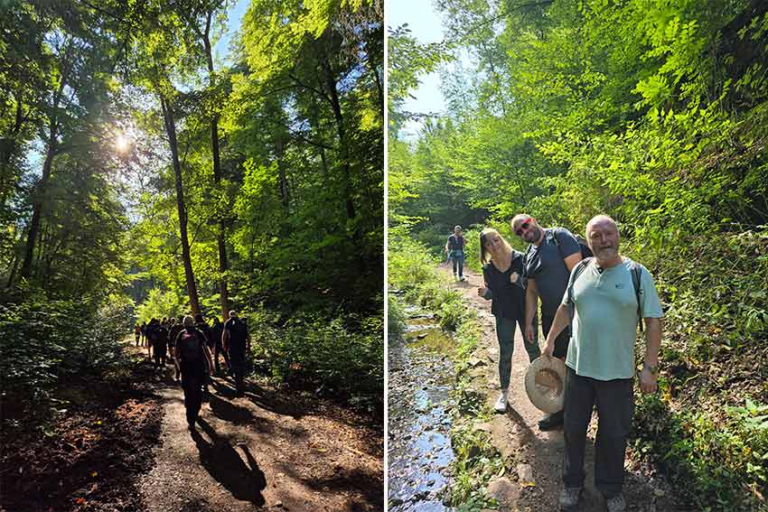 A real highlight was the Elfengrotte. Nestled between rocks and trees, it offered an almost fairytale-like setting, perfect for a quick climb and a refreshing break. Those who wanted could recharge their energy before moving on. Passing the picturesque Knöpfelsteiche and walking through a beautiful avenue lined with birch and beech trees, our path led us toward the Sängerwiese.