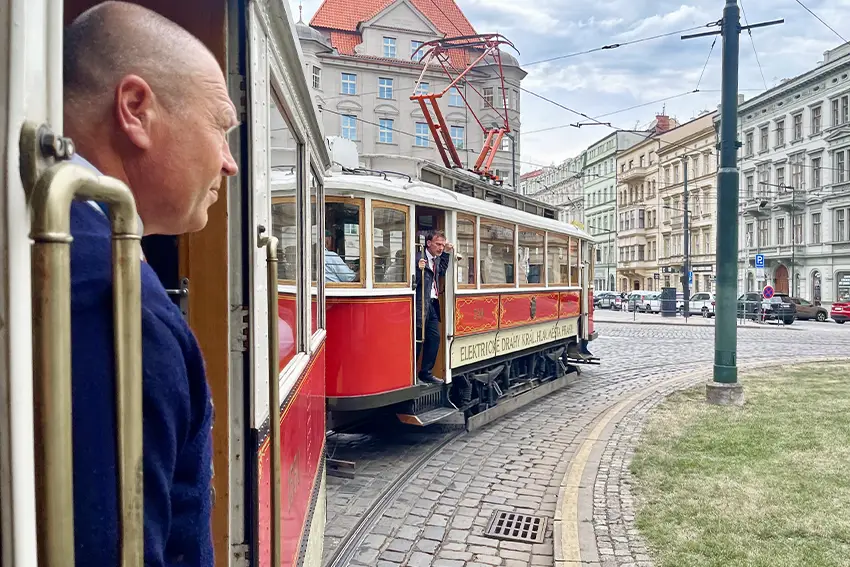 Der Nachmittag war bewusst dem gemeinsamen Erleben gewidmet. Bei einer Fahrt mit der historischen Prager Straßenbahn durch die Altstadt standen der informelle Austausch und das persönliche Kennenlernen im Mittelpunkt. Andrew Roseman, unser Agent aus Australien, fasste den Ausflug mit der alten Tram treffend zusammen: